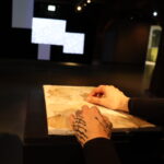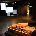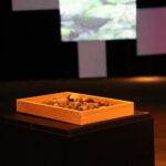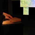Medien: Maßgefertigte taktile Interfaces (Steine, Strandsand, trockene Blätter), 3 Mikrofone, Mehrkanalton (Ambisonics), Machine Learning, Echtzeit-Video-Mapping (Fotografisches Archiv der Umgebung von Stade).