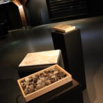 These modules contain materials collected in Stade and serve as tactile thresholds into its sound archive. Each texture — the coolness of the stone, the transience of the sand — triggers a composition of sounds and images. Contact with these surfaces releases preserved resonances: from the murmurs inside the waves to the sonic silence of stone polished by time, creating a dialogue between the hand and the latent memory of the materials.