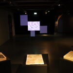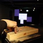 Estos módulos contienen materiales recopilados en Stade y funcionan como umbrales táctiles hacia su archivo sonoro. Cada textura — la frialdad de la piedra, la fugacidad de la arena — desencadena una composición de sonidos e imágenes. El contacto con estas superficies libera resonancias conservadas: desde el murmullo del interior de las olas hasta el silencio sonoro de la piedra pulida por el tiempo, en un diálogo entre la mano y la memoria latente de los materiales.