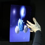 Este espacio transforma el gesto en una partitura efímera. El movimiento de las manos escribe sobre un campo de sonido sintético y, al mismo tiempo, solicita a un modelo de IA la generación de imágenes. Cada gesto modula la textura acústica y pinta con luz algorítmica, dando lugar a una coreografía audiovisual en la que la memoria no se representa, sino que se interpreta con el cuerpo.