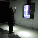 Dieser Raum verwandelt die Geste in eine flüchtige Partitur. Die Bewegung der Hände schreibt auf ein Feld synthetischen Klangs und fordert gleichzeitig von einem KI-Modell die Generierung von Bildern an. Jede Geste moduliert die akustische Textur und malt mit algorithmischem Licht, wodurch eine audiovisuelle Choreografie entsteht, in der Erinnerung nicht dargestellt, sondern mit dem Körper performt wird.